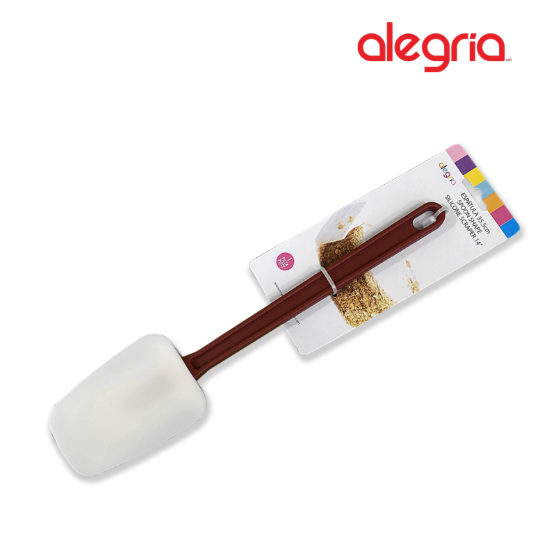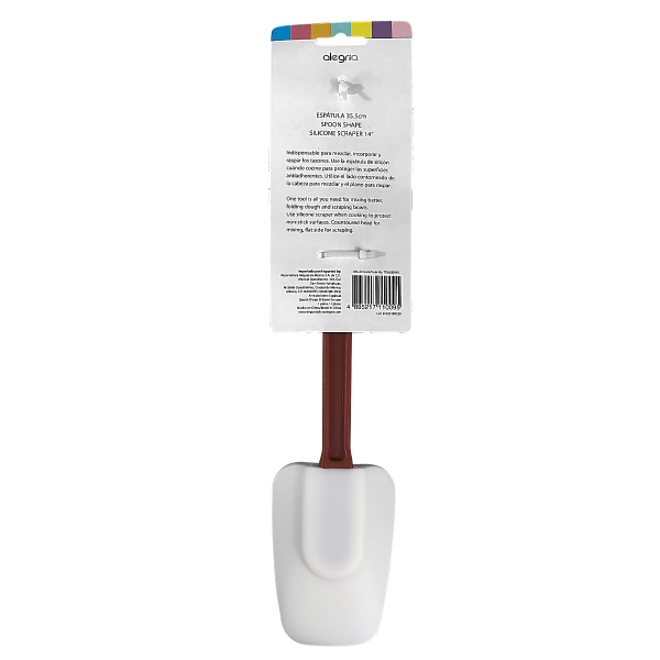 Indispensable para mezclar, incorporar y raspar los tazones. Use la espátula cuando cocine para proteger sus superficies antiadherentes. Utilice el lado contorneado de la cabeza para mezclar y el plano para raspar.
