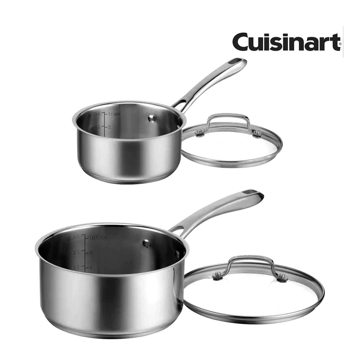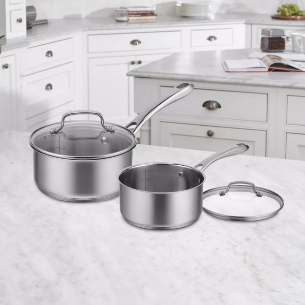 · El juego incluye: cacerolas de 1,5 qt y 3 qt con tapas de vidrio.