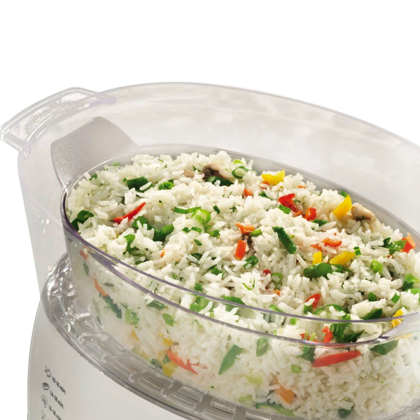 · Dos bandejas para cocinar al vapor una gran variedad de alimentos.