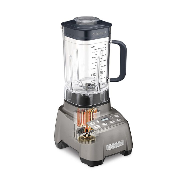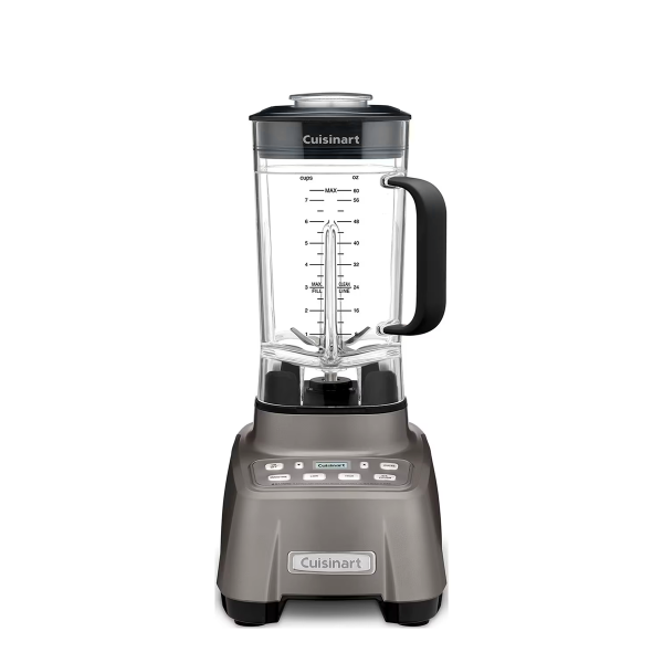 Licuadora Cuisinart® Hurricane ™ revolucionada y lista para funcionar. El motor profesional de 2.25 caballos de fuerza alcanza incluso las tareas más pesadas de pulverización con facilidad, y el diseño de doble carcasa mantiene el funcionamiento silencioso para que la conversación no tenga que detenerse. El frasco Tritan ™ libre de BPA de 60 onzas se encuentra en una base elegante y potente, diseñada para un fácil vertido, con un mango suave para agarre seguro. Con solo tocar un botón, puede mezclar velocidades baja y alta, pulso y opciones pre-programadas de Smoothie y Crush Ice.