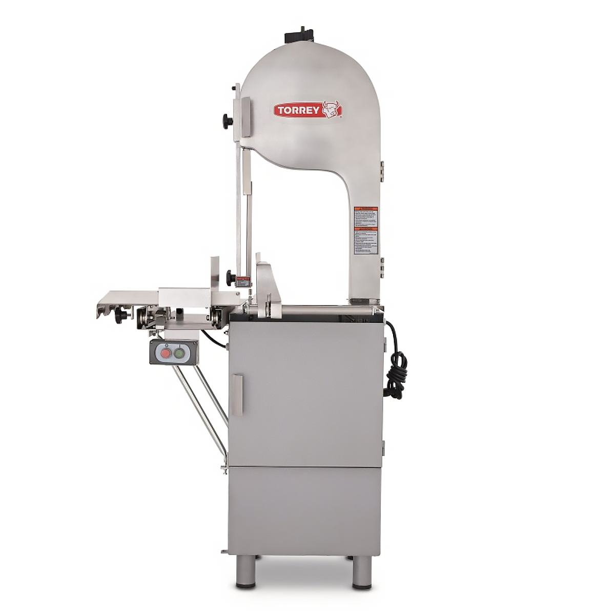 Sierra carnicera Torrey de aluminio anodizado, banda de 295 cm con mesa desmontable y múltiples dispositivos de seguridad para protección