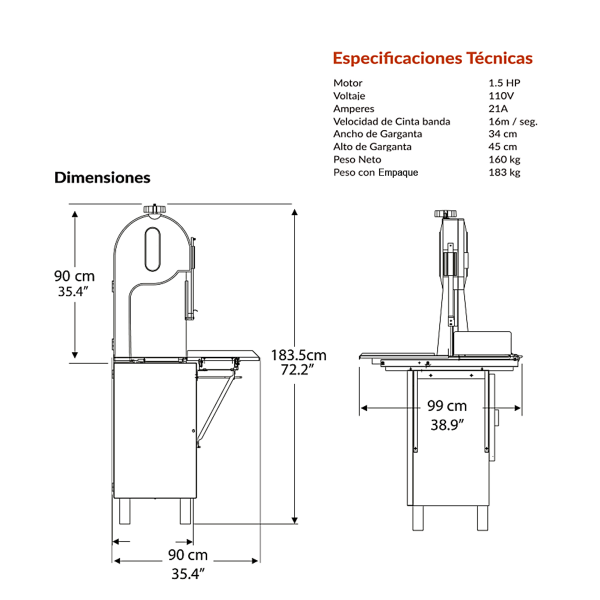 La Sierra ideal para emprender tu negocio, ya que su sólida construcción en aluminio anodizado te brindara años de trabajo rudo durante largas jornadas de trabajo, además de contar con sensores de seguridad para una operación segura, regulador de ancho de corte para realizar coretes perfectos, bistekeador de ultimo corte, para cortar de forma segura y un excelente sistema de tensión para colocar la cinta banda de forma fácil y rápido.