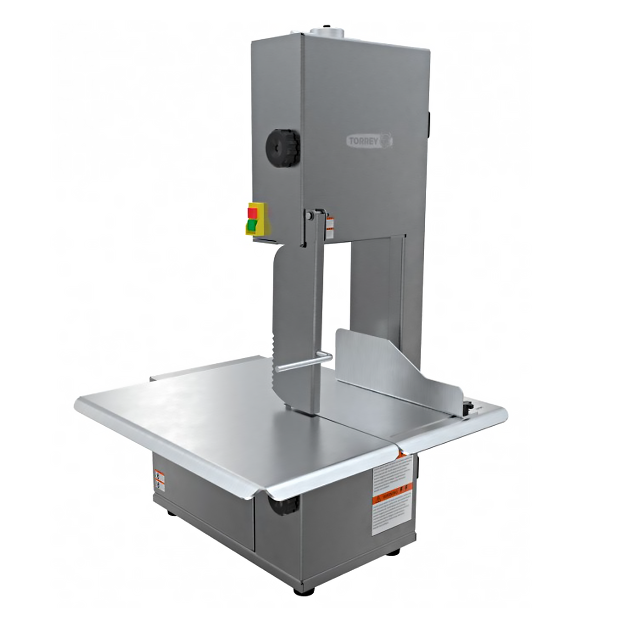 Sierra carnicera Torrey de acero inoxidable, compacto, banda de 180 cm con mesa desmontable y múltiples dispositivos de seguridad para protección