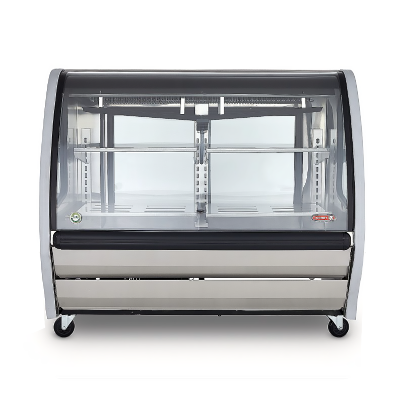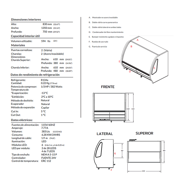 Cuenta con 4 charolas en acero inoxidable y ofrece 3 niveles de exhibición.