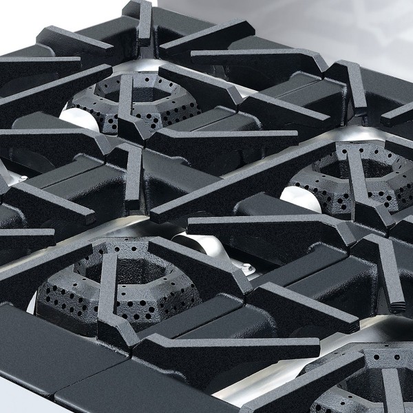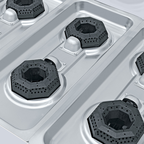 3 parrillas superiores en hierro fundido montadas sobre una cubierta semi-sellada.