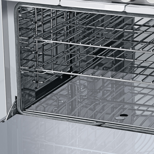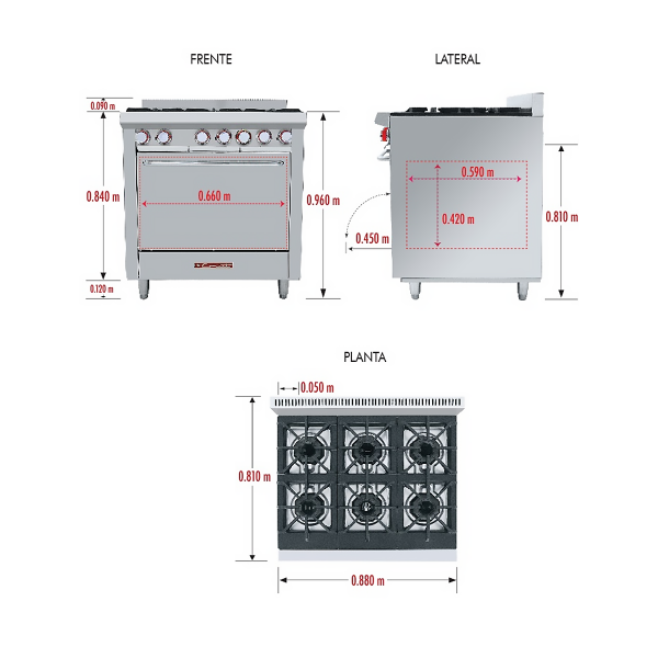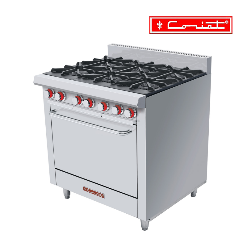Estufa a gas con 6 quemadores abiertos y 1 horno